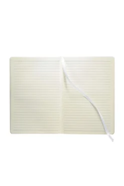This notebook measures 5.5″ x 8.5″ and features an UltraHyde hardcover for durability. Inside, it contains 80 cream-colored, lined pages for writing, along with an elastic closure and a ribbon marker for convenience. The product weighs 10.9 oz, making it a sleek and practical choice for everyday use.