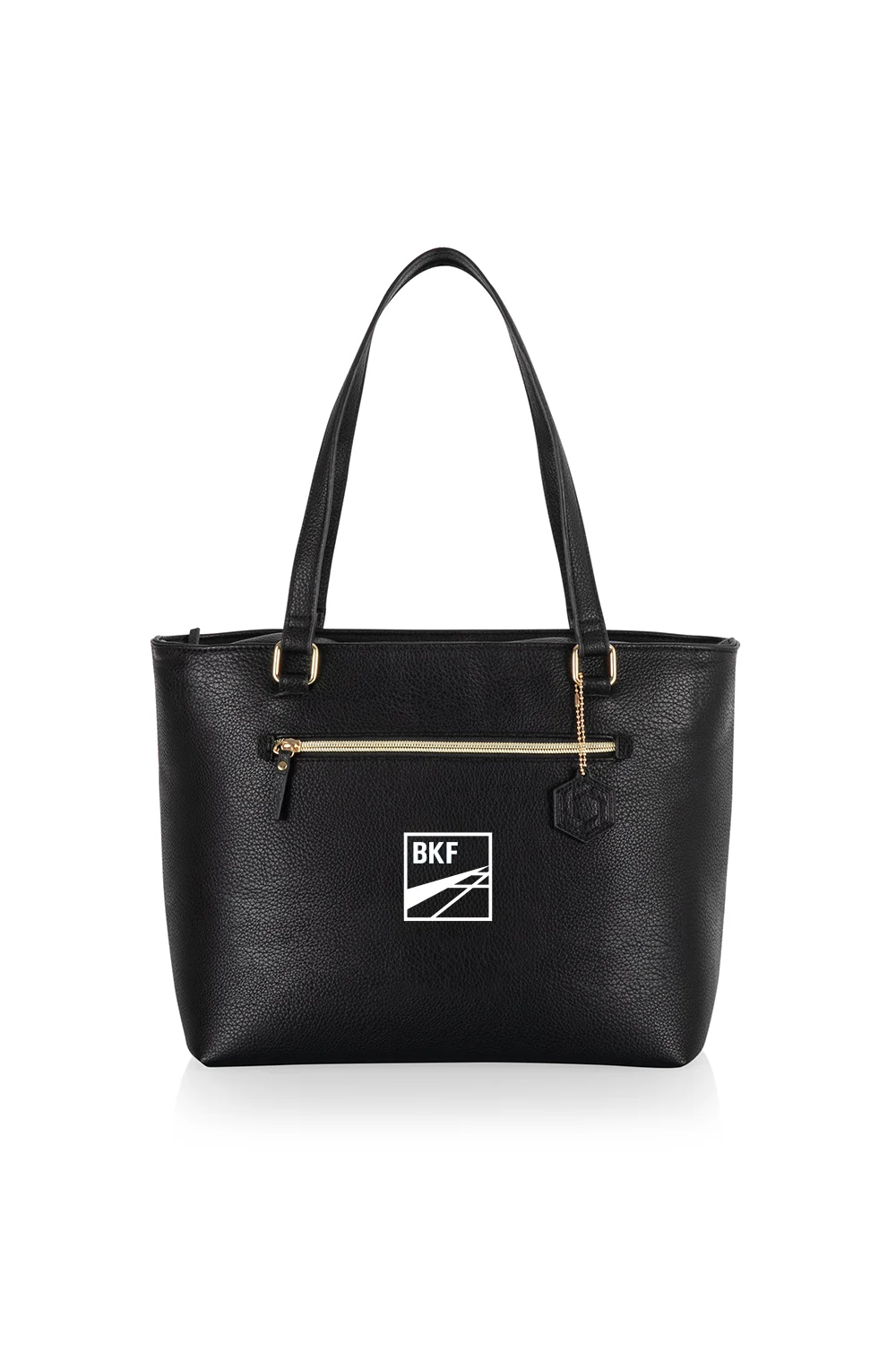The Uptown Cooler Tote Bag combines style and function with its vegan pebbled leather exterior, fully insulated interior, gold accents, and a zippered exterior pocket for dry goods. Measuring 14.37″ x 7.28″ x 10.63″, it includes a comfortable shoulder strap for easy carrying, with silkscreen decoration available.