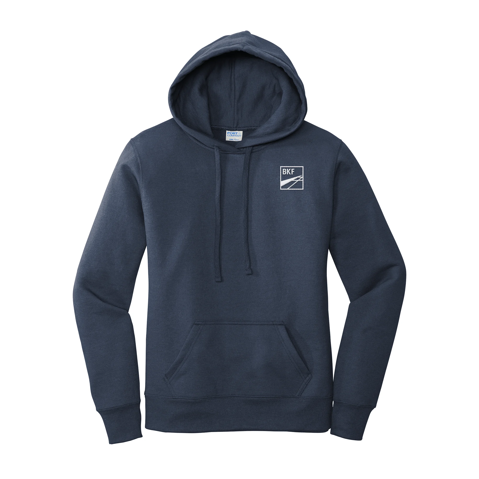 The Women’s Fleece Hoodie is a cozy pullover made from a 50/50 cotton/poly fleece blend with air jet yarn for added softness. It features a self-fabric lined hood with dyed-to-match drawcords, a front pouch pocket, and 3-inch rib knit cuffs and hem. A tear-away label ensures comfort throughout the day.