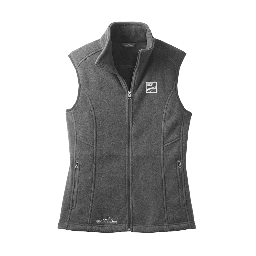 Ward off early morning chills by insulating your core with this soft, cozy vest. Princess seams, dyed-to-match reverse coil zippers, front zippered pockets with tricot lining, binding at armholes, and an open hem. Embroidered Eddie Bauer contrast logo on right hem. Made of 6.9-ounce, 100% polyester fleece. Produced using Low Impact Technology (L.I.T.™) which uses less dyestuffs, thermal energy, and water for enhanced softness, performance and after-care quality.