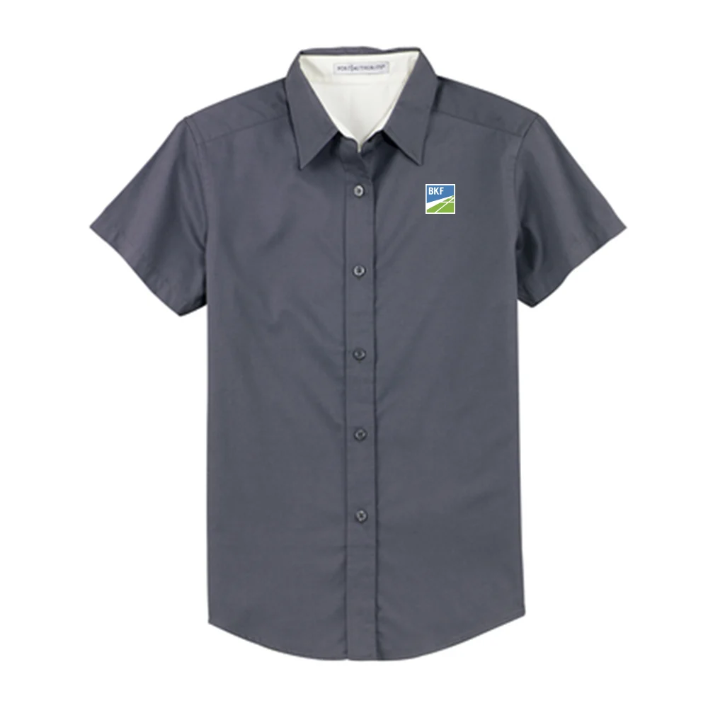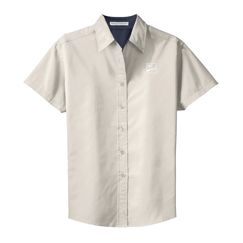 This comfortable wash-and-wear shirt is indispensable for the workday. Wrinkle resistance makes this shirt a cut above the competition so you and your staff can be, too.. 4.5-ounce, 55/45 cotton/poly. Traditional, relaxed look. Open collar. Dyed-to-match buttons. White, Athletic Gold, Texas Orange, Red, Burgundy, Coffee Bean, Light Blue, Navy, Classic Navy, Steel Grey, Purple and Black have a Light Stone contrast neckband.. Light Stone and Royal have a Classic Navy contrast neckband.. Dark Green has a Navy contrast neckband.